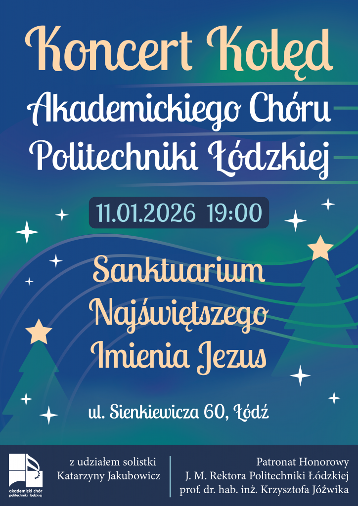 Koncert kolęd w Sanktuarium Najświętszego Imienia Jezus w Łodzi, pod Honorowym Patronatem J.M. Rektora Politechniki Łódzkiej prof. dr. hab. inż. Krzysztofa Jóźwika.